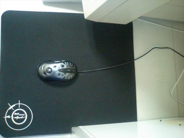 厚みを増して山ができたりするのを防いだQcK+です。 PCデスクの1/4から1/3を占有してくれます。 wasd.jpのレビューにもあるとおり、よく滑り、よく止まります。 (WiLD3y3s)