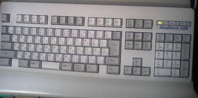 Topre Realforce 106S(LA200) 全加重30gのタイプです。 変加重はゲーム向きではないと判断し、106Sにしました。 ただやはり軽くて違和感はあります。 全加重45gのが一番いいのですが… (WiLD3y3s)